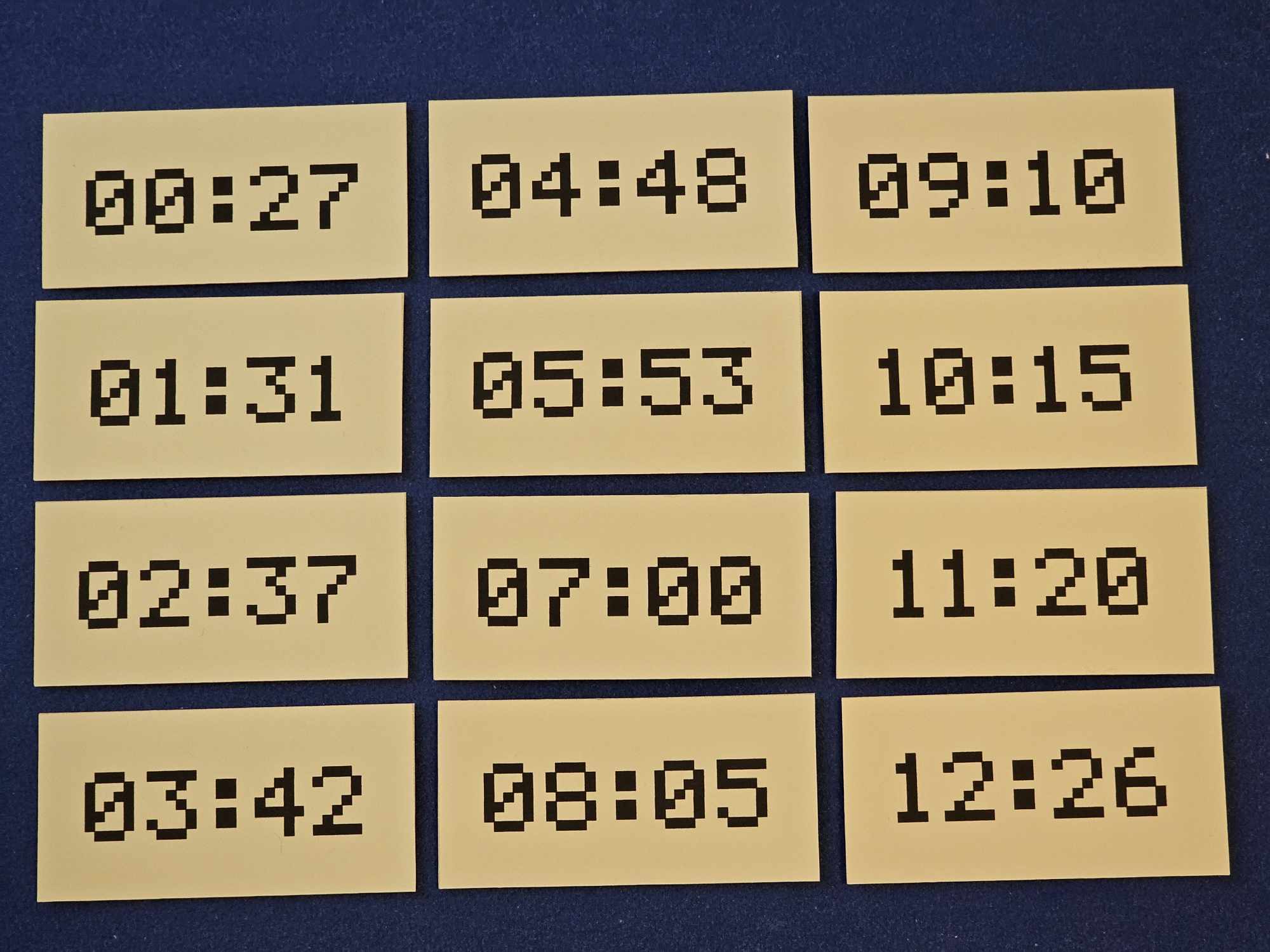 24 hour format, then you can make a extra set of 11 cards, converting the 11 original times like this: add
