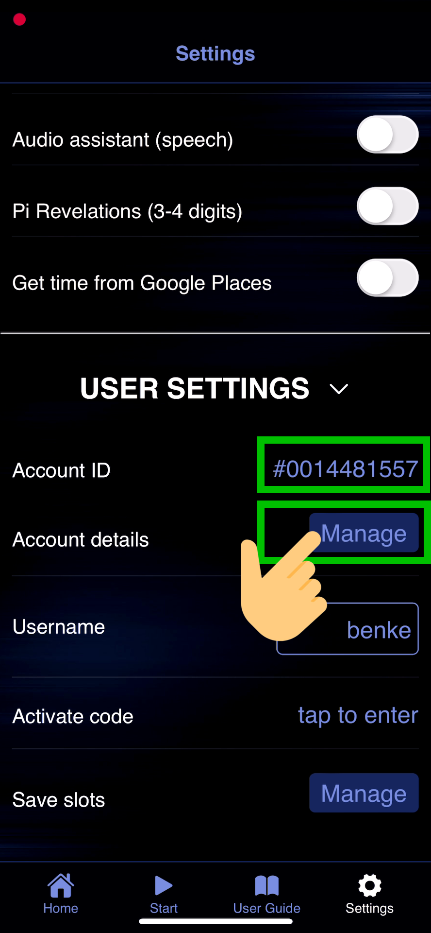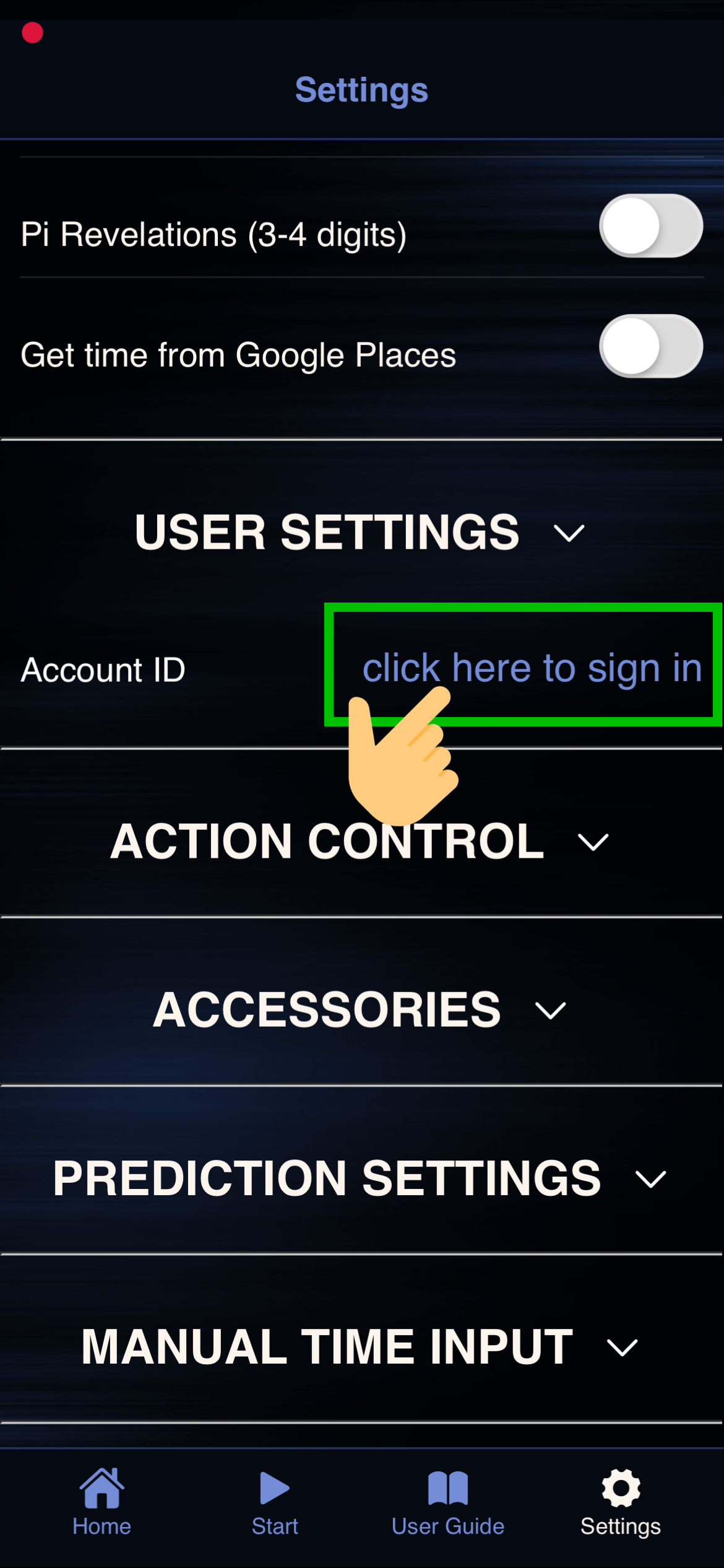 - in my app go back to USER SETTINGS, and tap "click here to sign in"